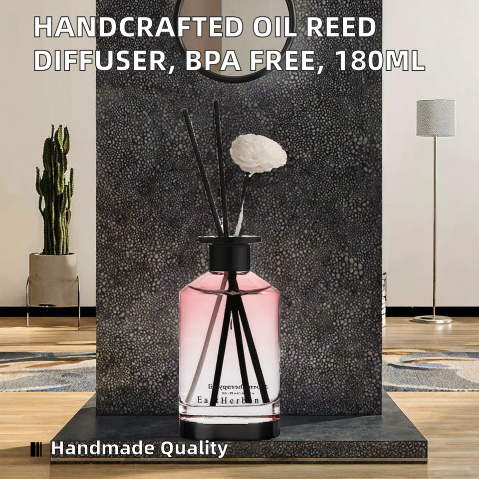 Premium Quality Handcrafted Glass Oil Reed Diffuser 180mL Capacity BPA Free Alcohol Free Long-Lasting 3 Months Multi-Use Home