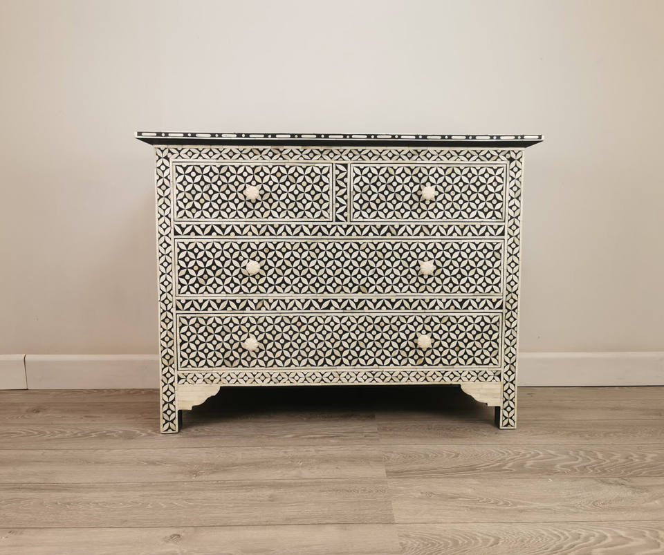 Premium Quality Handcrafted Indian Bone Inlay Drawer Chest With Floral Design For Bedroom Decor At Affordable Price