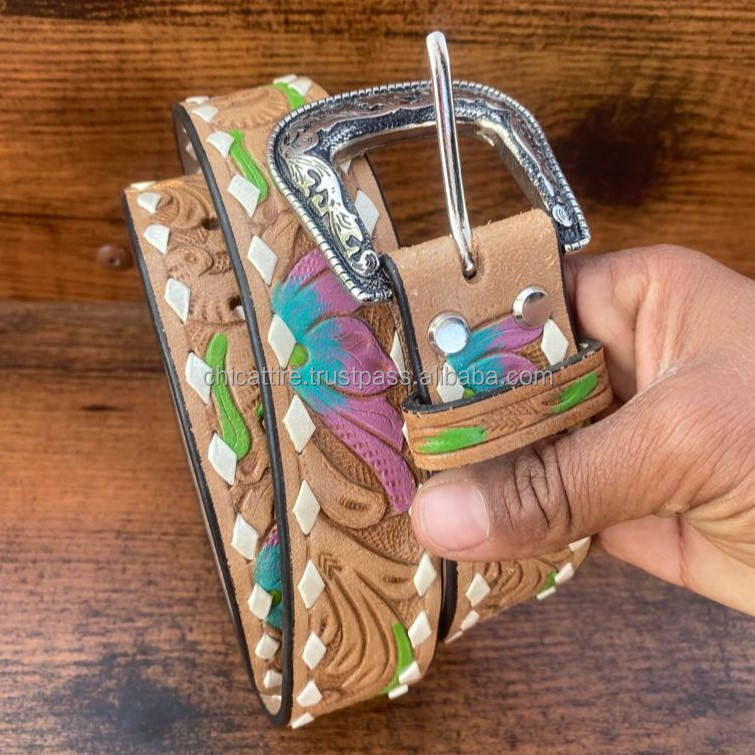 Premium Quality Handmade Tooled Leather Belt for Women Customized Heavy Duty Western Full Grain Genuine Cowhide Leather Belts