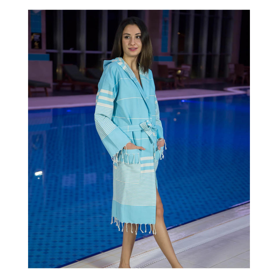 Premium Quality Harem Turkish Towell Bathrobe 100% Cotton Blue High Quality Peshtemal Wear Made in Turkey