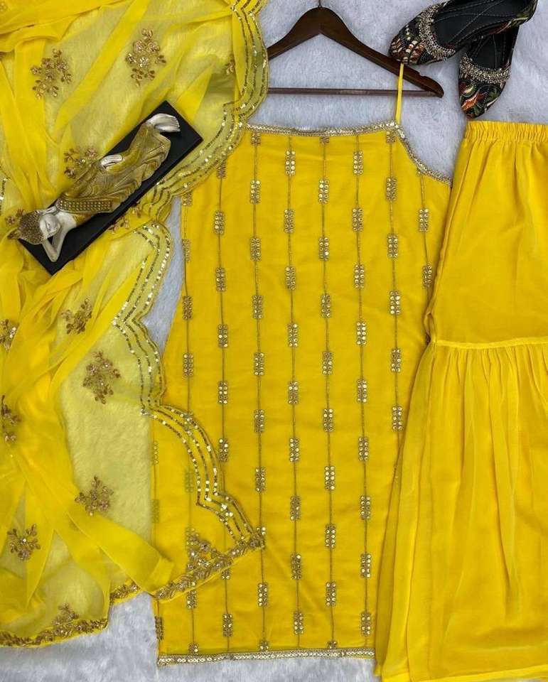 Premium Quality Heavy Designer Exclusive New Heavy Georgette With Embroidery Sequence Work Suit With Full Flair Sharara