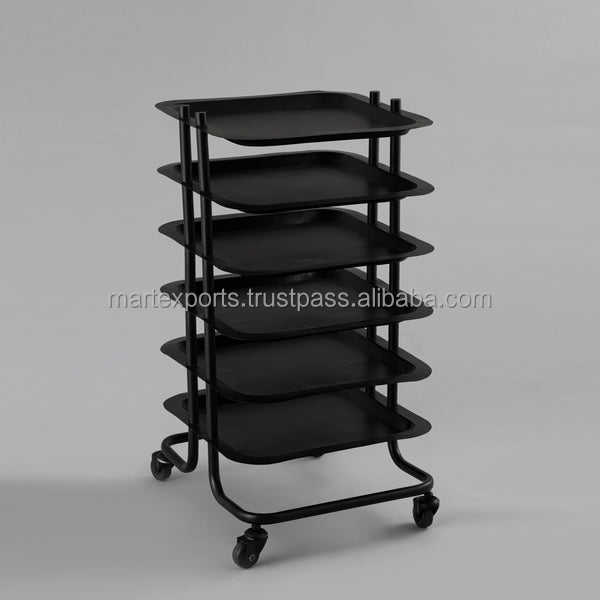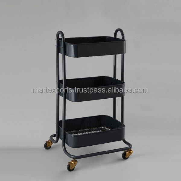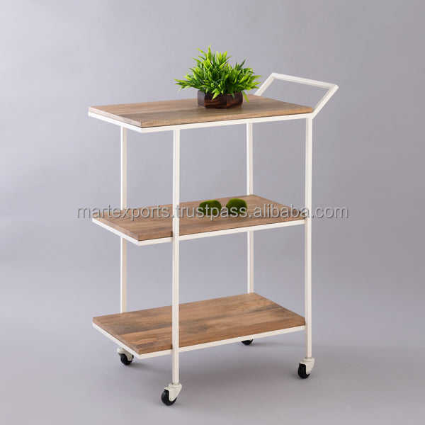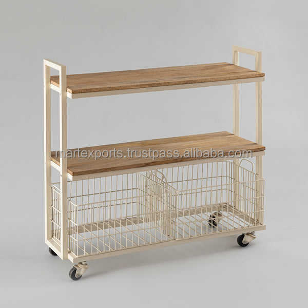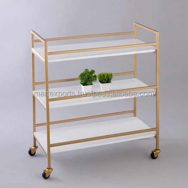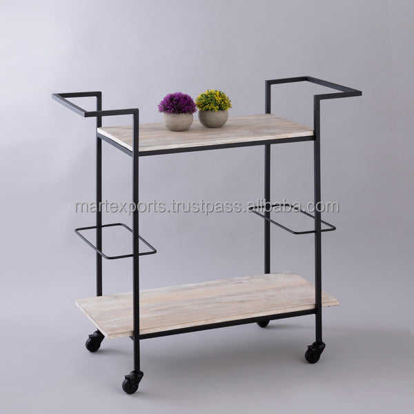Premium Quality Heavy-Duty Vintage 2-Tier 4-Wheel Metal Serving Trolley Modern Design Wine Barware Tea Cart Kitchen Wine Cellar