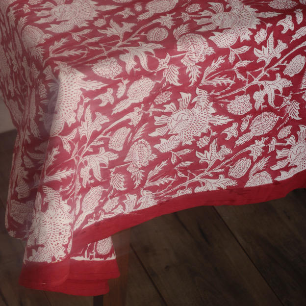 Premium Quality Indian Cotton Hand Block Printed Rectangle and Round Floral Dinning Tablecloth 72 Inches for Wedding Home