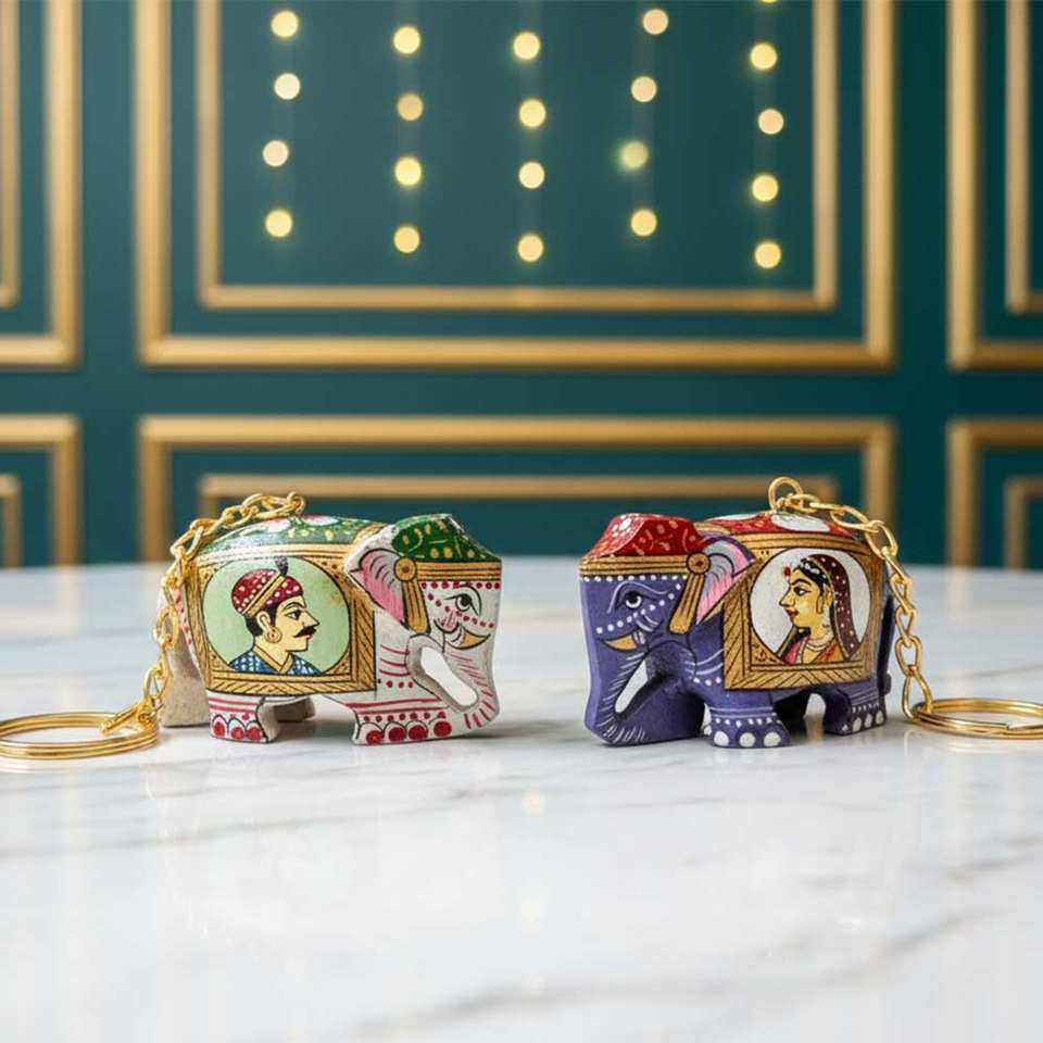 Premium Quality Indian Eco-Friendly Wooden Elephant Keychain Handmade with Smooth Surface Modern Design Custom Colors Available