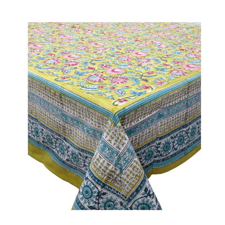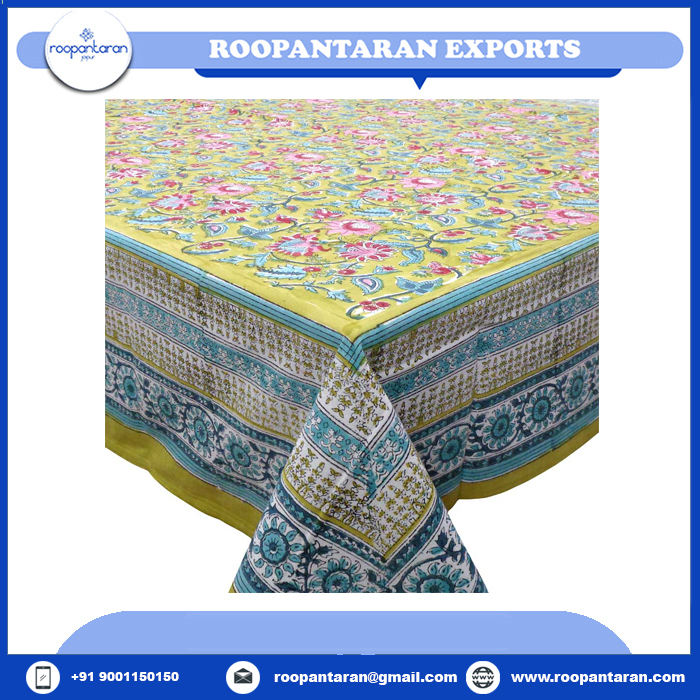 Premium Quality Indian Manufacturer Handcrafted Cotton Tablecloth Hand Block Printed Carefully Designed Bulk Supply