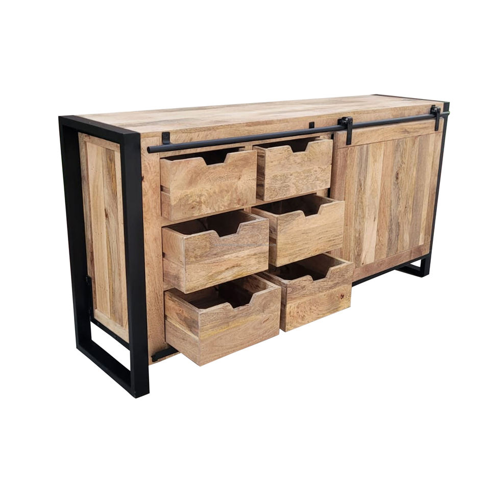 2024 Premium Quality Handmade Industrial Sideboard 6 Wooden Sliding Door Drawers Stylish Home Furniture for Living Room Bar
