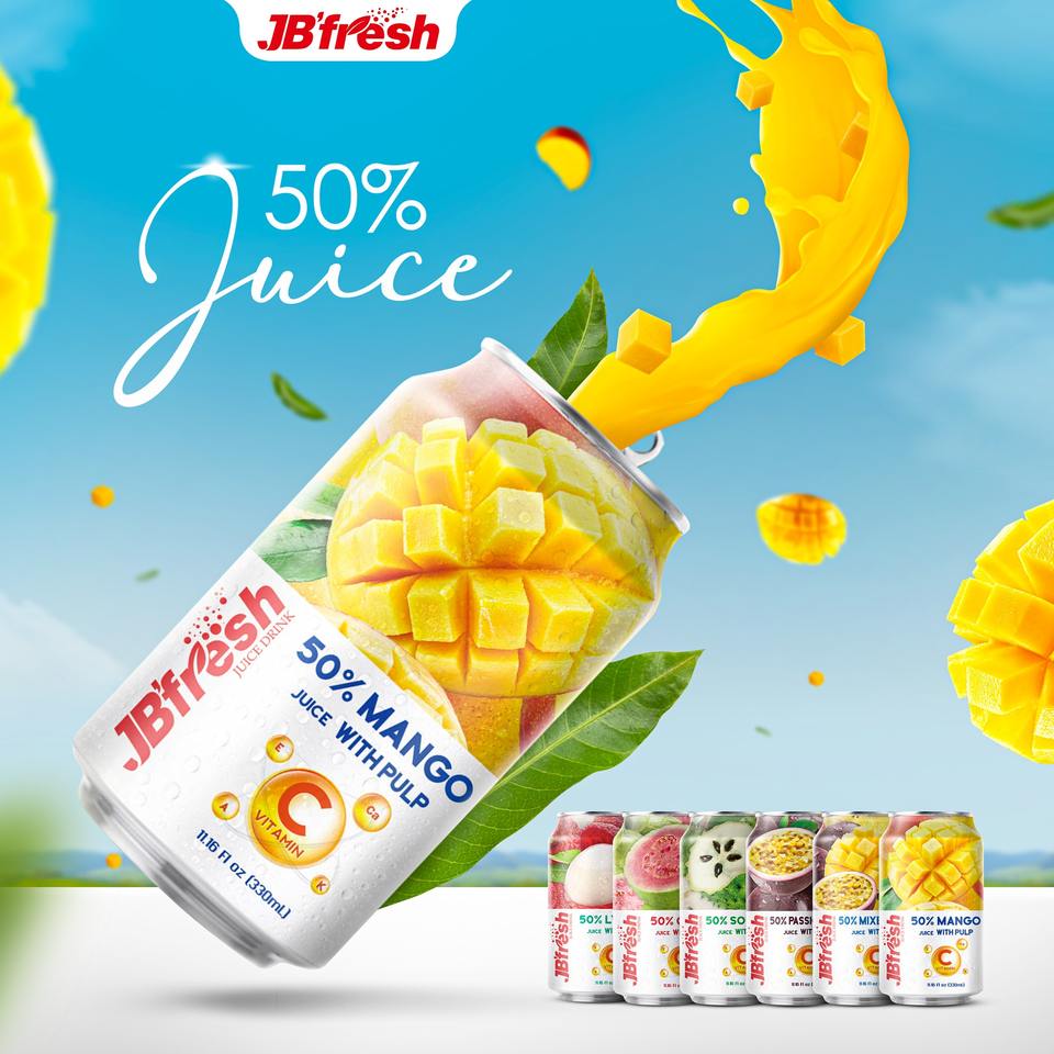 Premium Quality JB'Fresh Fruit Juice Drinks with Pulp 500ML Canned Mixed Flavor Soursop Mango Passion Lychee Juice Manufacturer