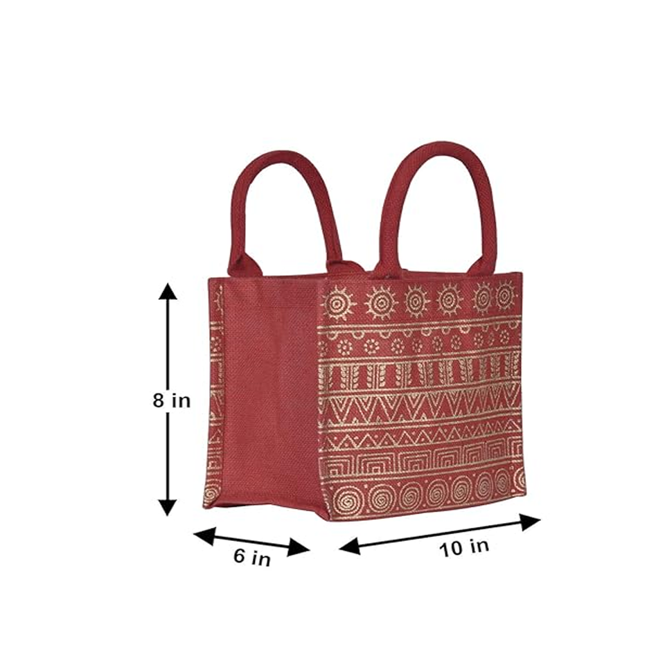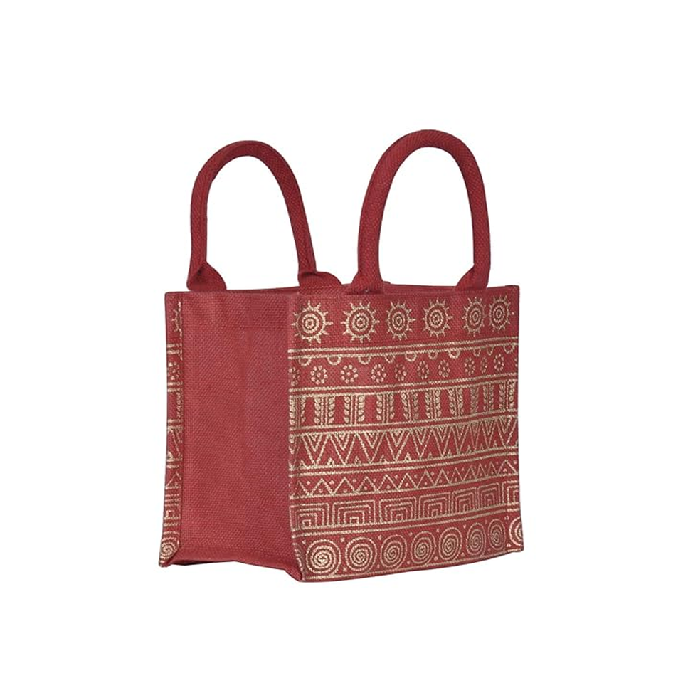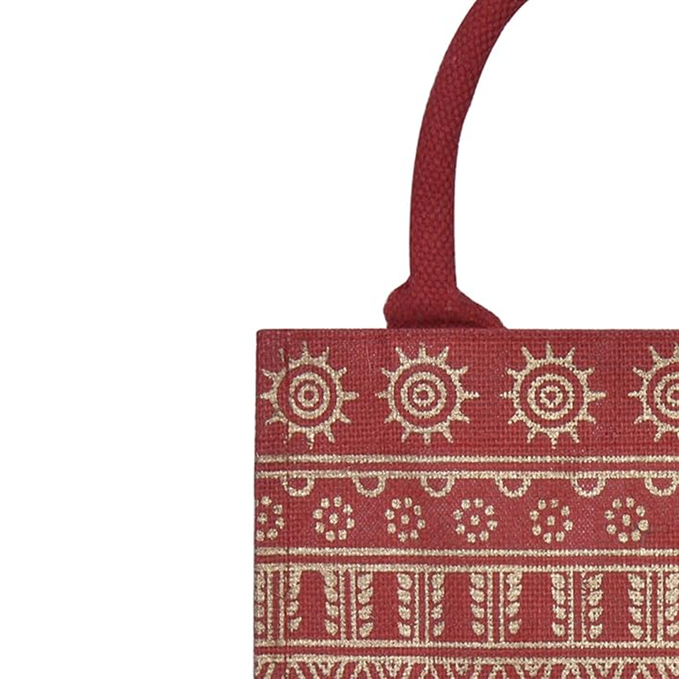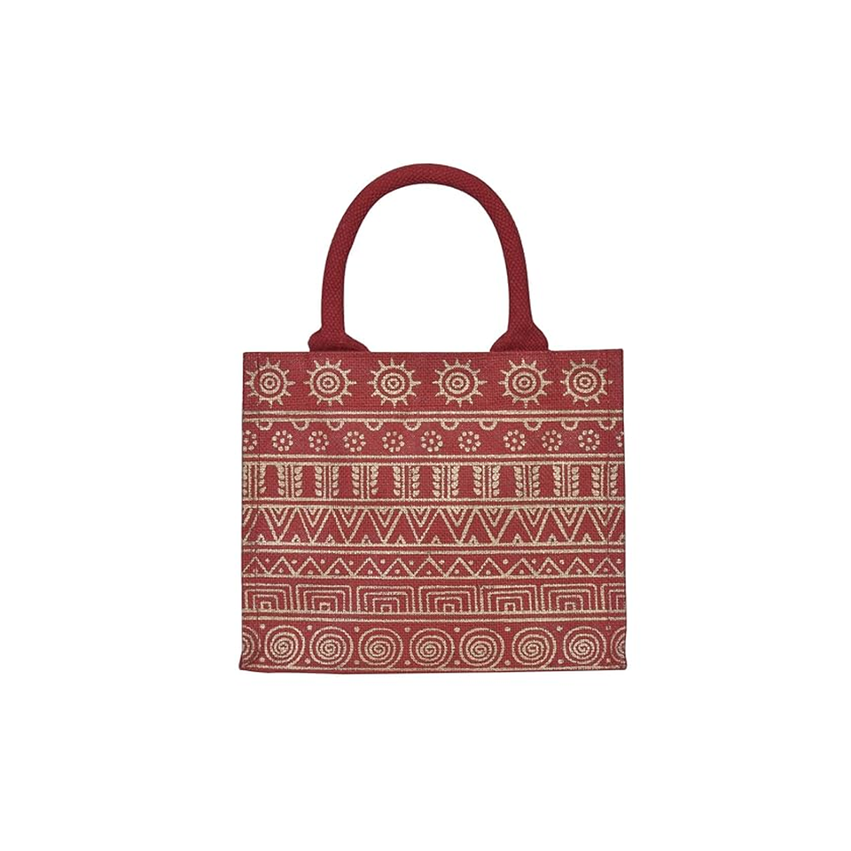 Premium Quality Jute Shopping Tote Bag Geometric Pattern Bohemian Fashion Style Easy Carry Padded Webbing Handle Strong Capacity