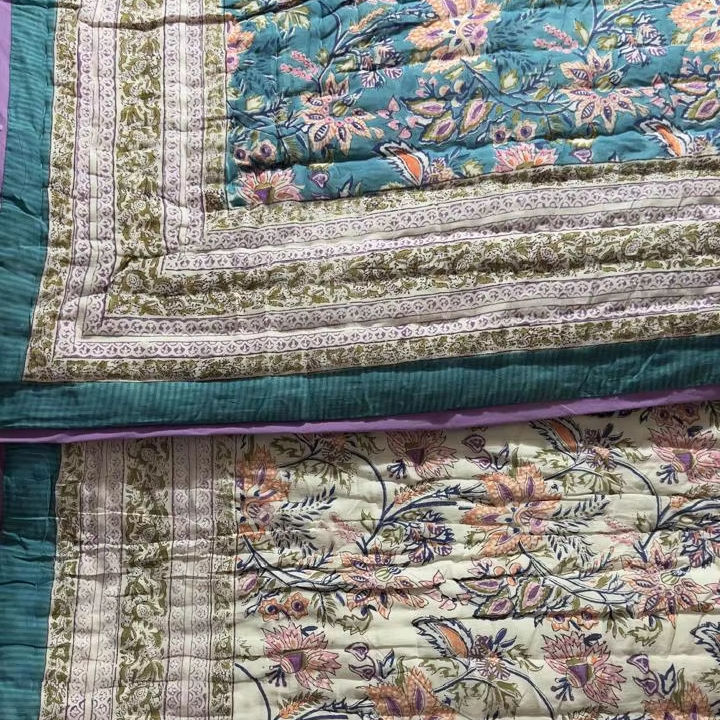 Premium Quality Kantha Design Cotton BlockPrint Quilted Luxury Oversized Throw Blanket SoftBed Coverlet CottonFabric Dressmaking