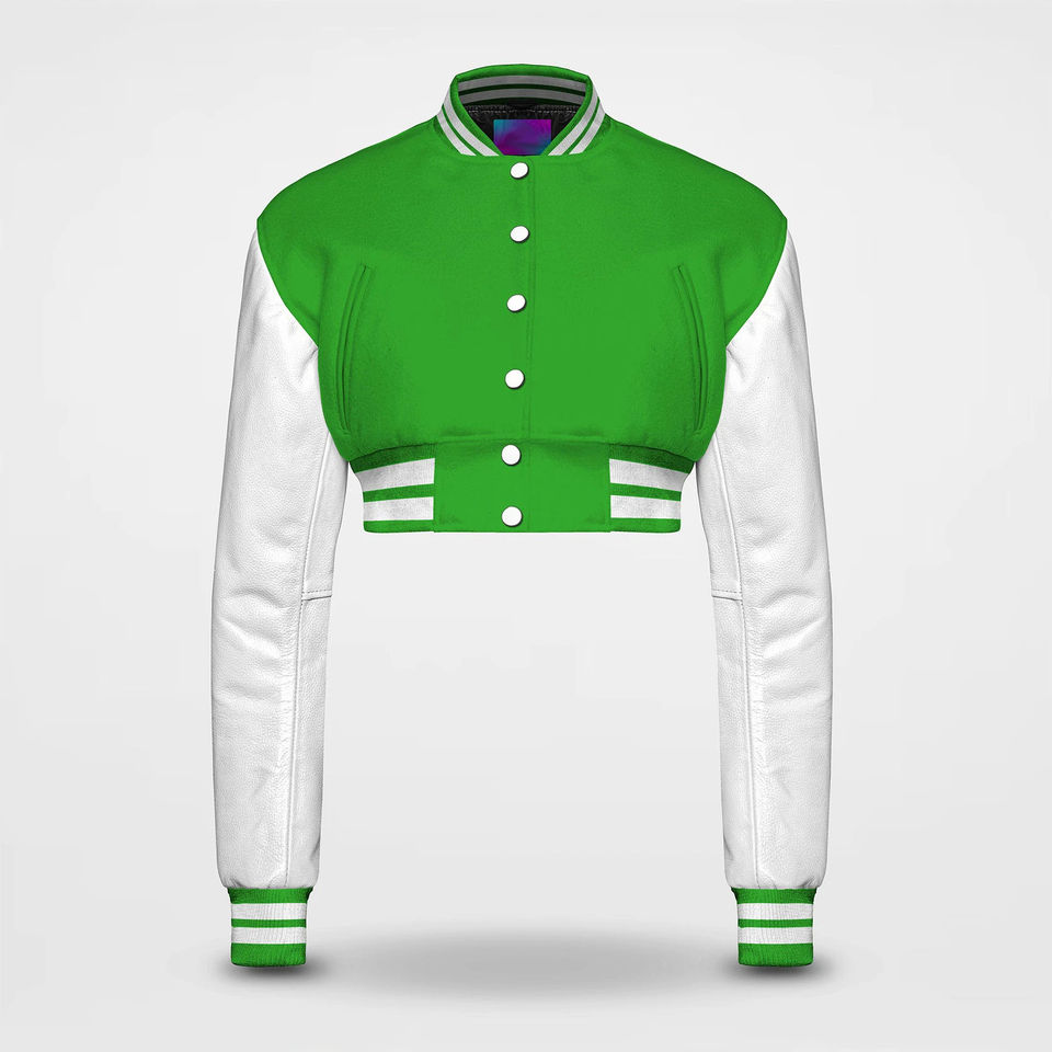 Premium Quality Ladies Plus Size Quilted Baseball Crop Varsity Jackets Women's Wool Crop Top with Long Sleeves Wholesale Jackets