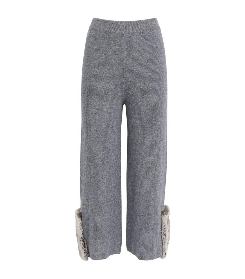 Premium Quality Latest Design Cheap Price Grey Color Fur Trim Trousers For Women's Winter Custom Clothing Trouser For Women's