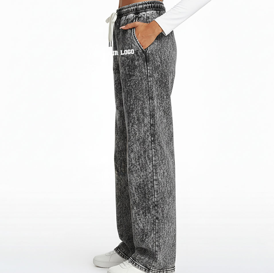 Premium Quality Lightweight Elastic Waistband Acid Wash Sweatpants Hip Hop Style Wide Bottom Fashionable Streetwear Jogger Pants