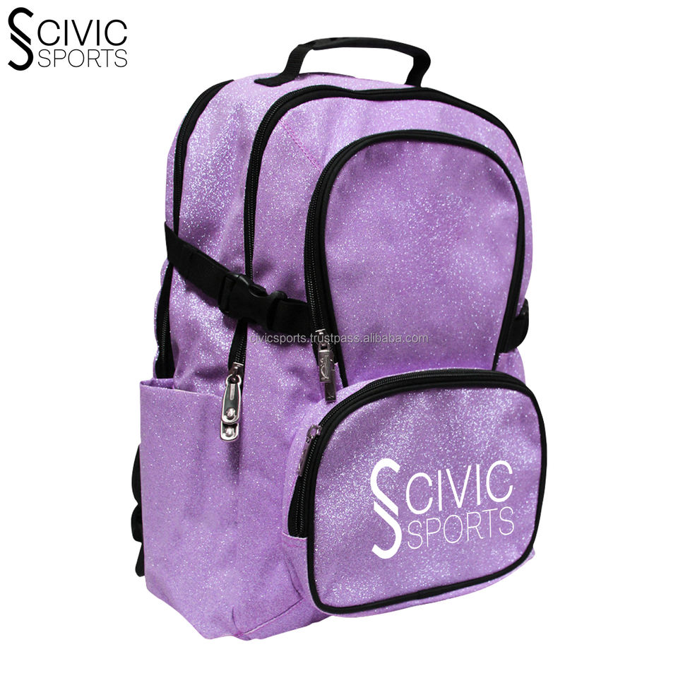 Premium Quality Lightweight Glitter Cheer Bag Sports Travel Sparkle Backpack Polyester Internal Frame Cheer Clutch Beauty BAG