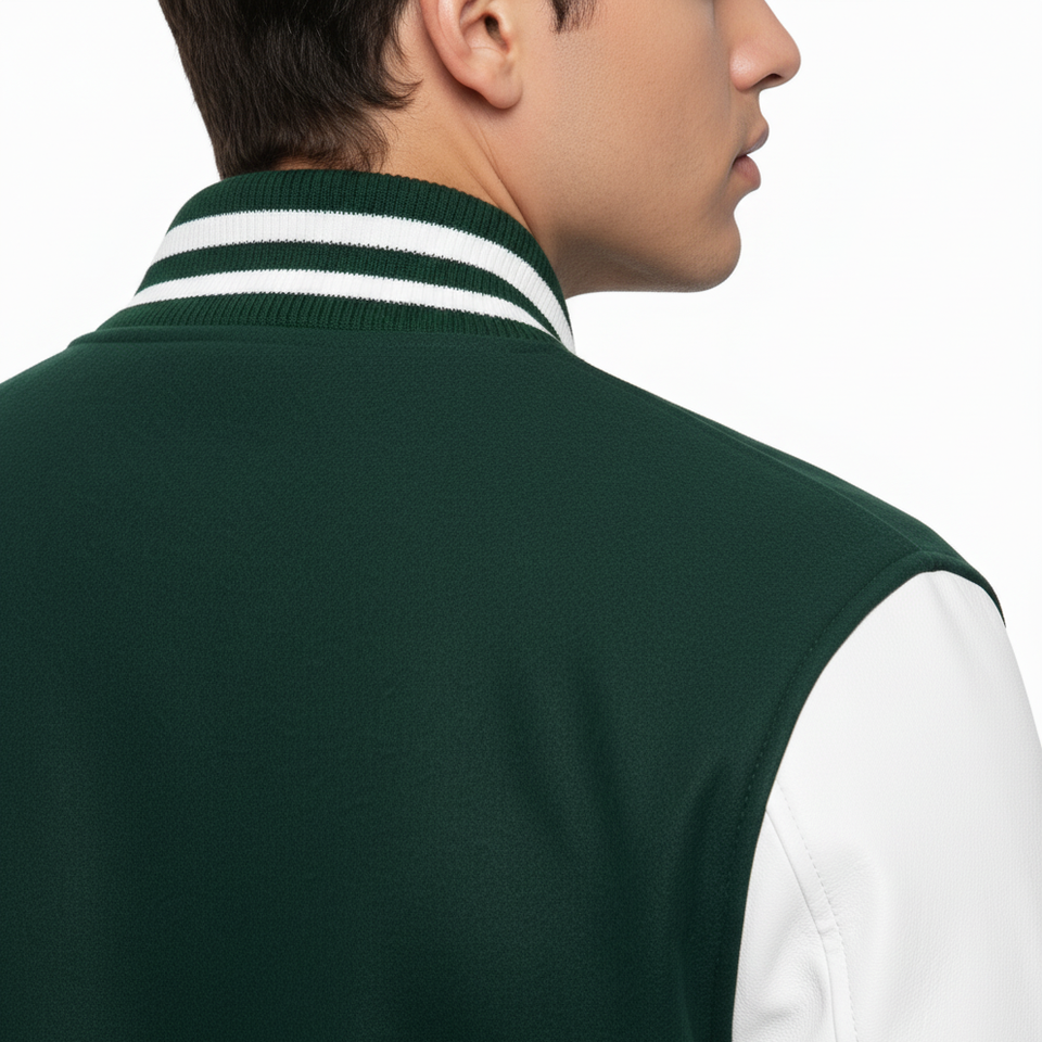 Premium Quality Loose Casual Varsity Sport Style Wool Baseball Jacket Men Stand Windproof Breathable Embroidered Logo Plain Dyed