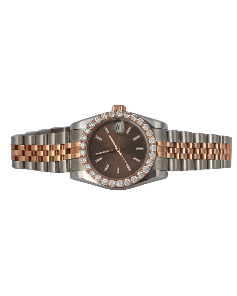 Premium Quality Luxury Original Customized Brown Dial Wrist Watch Cut Moissanite Diamond Round Case Hip Hop Style in Rose Gold