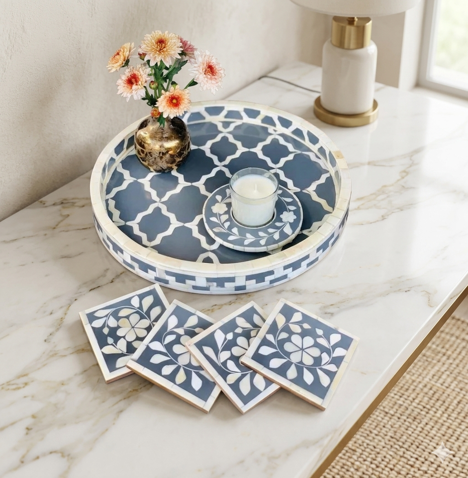 Wholesale Bone Inlay Tray Hot Selling Product Large Size Tray Home Table Decor Food Fruits Dinner Serving Tray for Best Sale