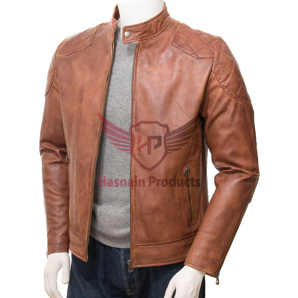 Premium Quality Men's Tan Leather Biker Jacket - Handcrafted Customized Motorcycle Coat with Distressed Vintage
