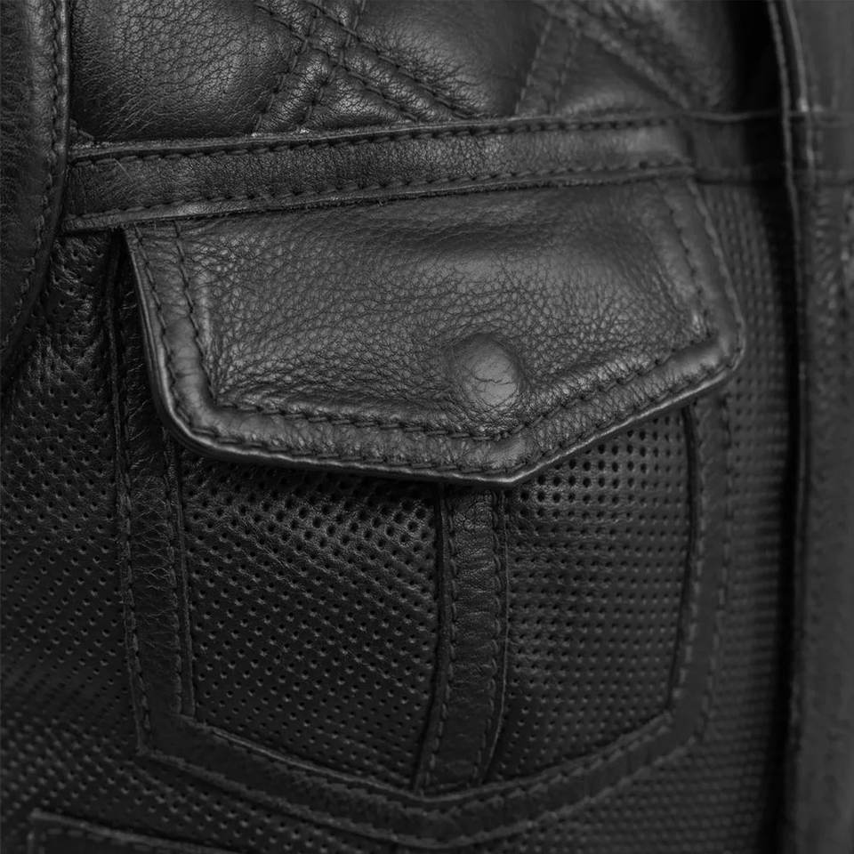 Premium Quality Mens Classic Leather Motorcycle Vest with Front Pockets Breathable Winter Style Wholesale Black Biker Waistcoat