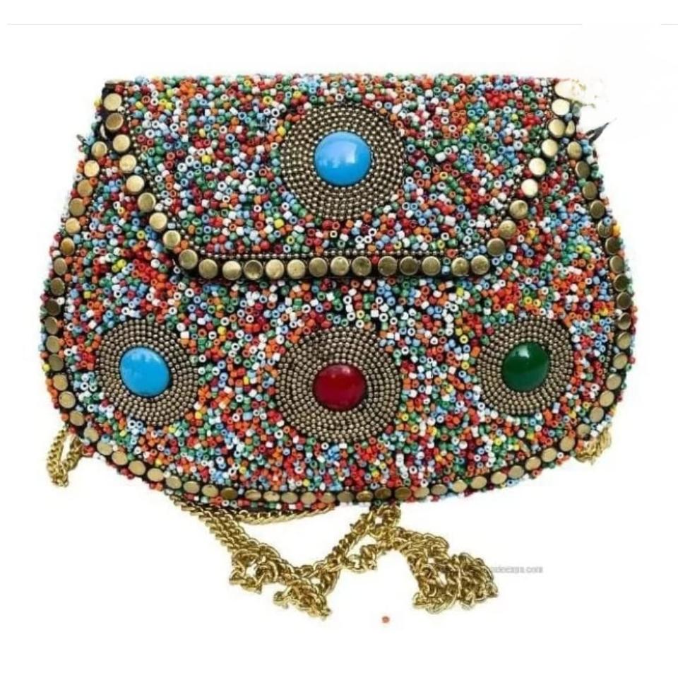 Premium Quality Metal Clutch Bag Women's Handbag Clutch Purse With Silver Stud & Gemstones Design With Silver Straps Chain also