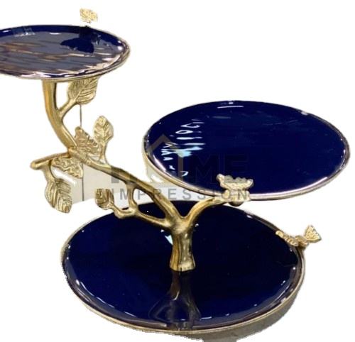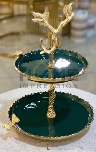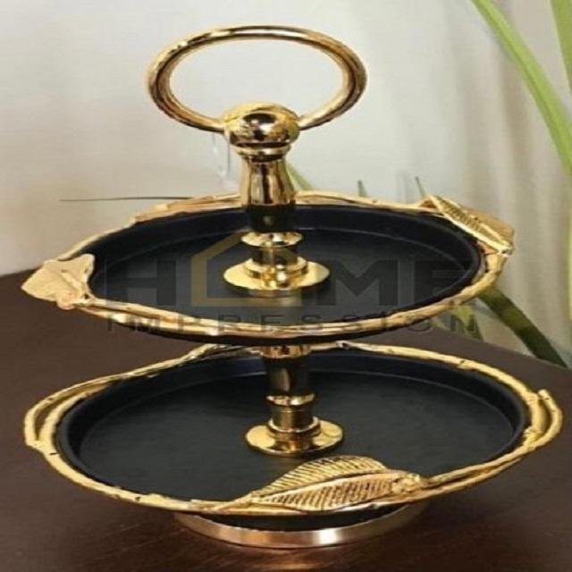 Premium Quality Metal Rims Stand Glossy Black Enamel Round Glass Beaded Corner Serving 2 Tier Luxury Cake Stand for Best Sale