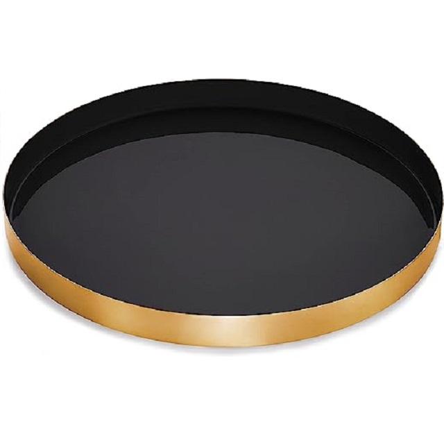 Premium Quality Metallic Round Shaped Tray With Enameled Inside Kitchen Accessories Coffee Tea Standing Platter for Home