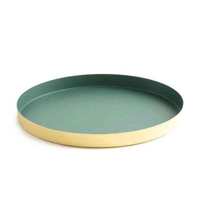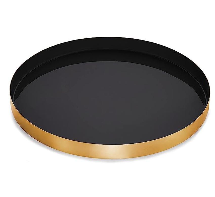 Premium Quality Metallic Round Shaped Tray With Enameled Inside Kitchen Accessories Coffee Tea Standing Platter for Home
