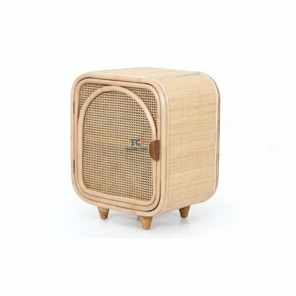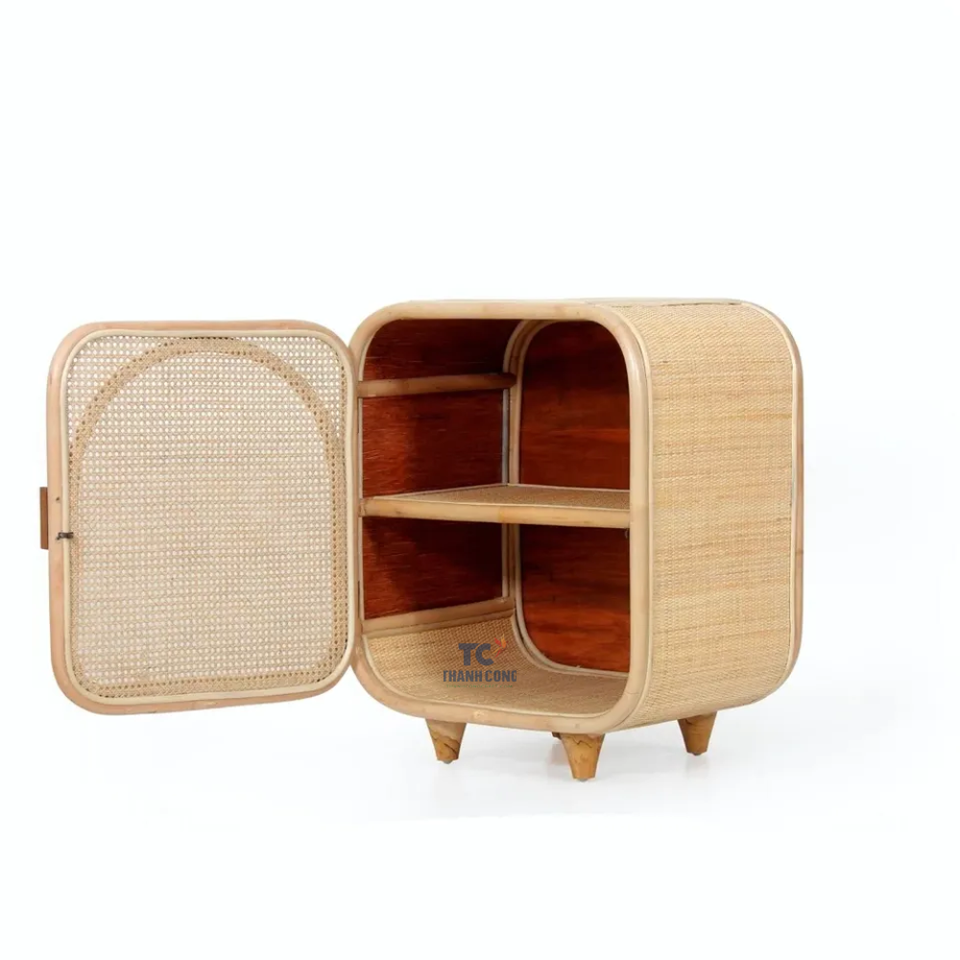 Premium Quality Mini Rattan Cabinet Natural Mixed Wood Beside Table Modern Style