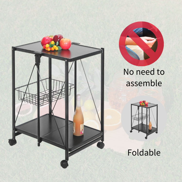 Premium Quality Mobile Food Cart with Metal Storage Basket Design
