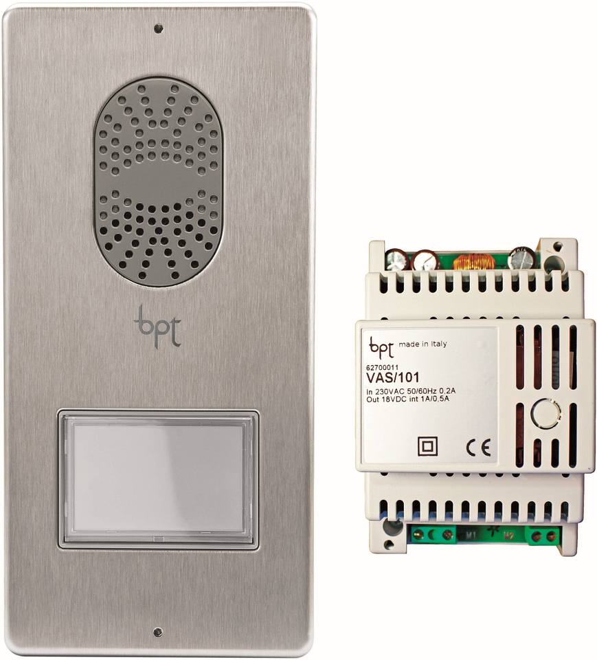 Single-family audio entry system kit, consisting ofLC/01 wall-mounting door entry panel, with one call button VAS/101 power supply unitProject Solution Capability