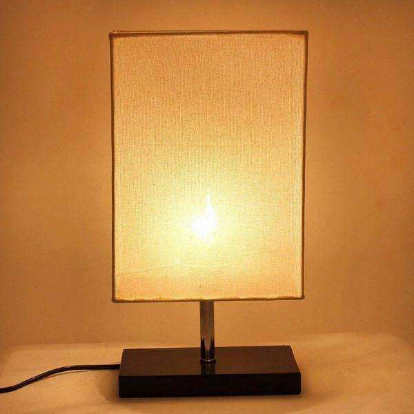Premium Quality Modern Rectangular Fabric Table Lamp Warm White Shade Black Wooden Base Elegant Living Room And Bedroom Decor