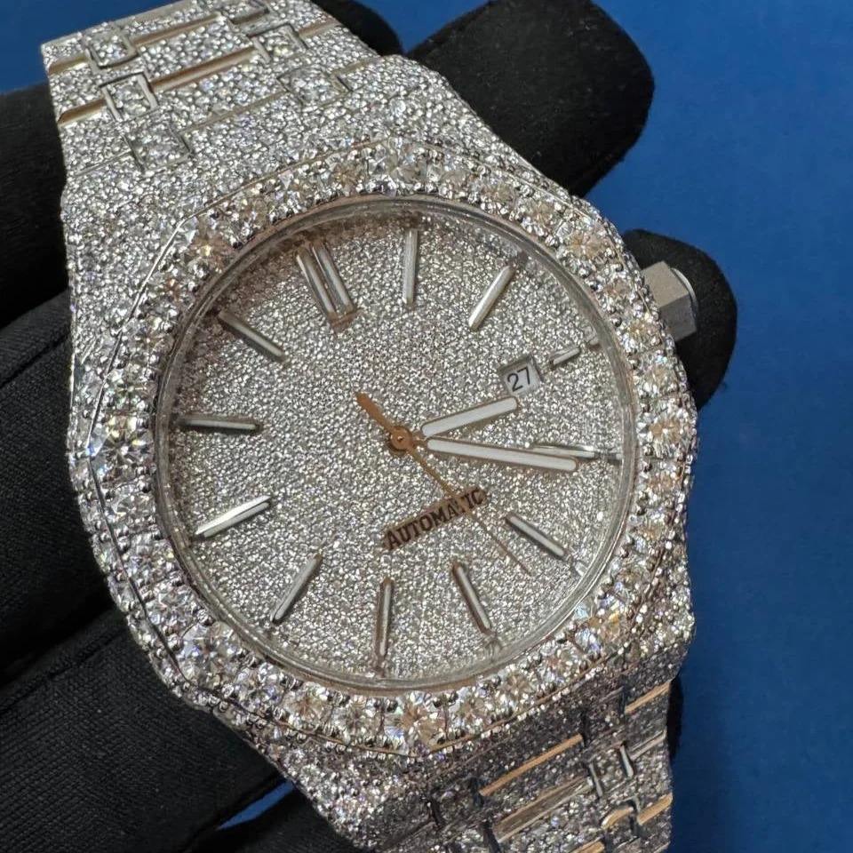 Premium Quality Moissanite Diamond Stainless Steel Bust Down Hip Hop Fashion Wrist Watch For Men Available At Export PriceLuxury