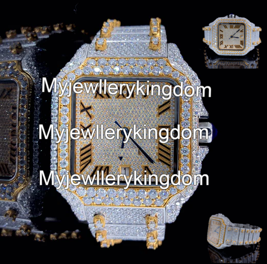 Premium Quality Moissanite Diamond Watch for Men and Women Stainless Steel Dial Band Hip Hop Style Diamond Watch.