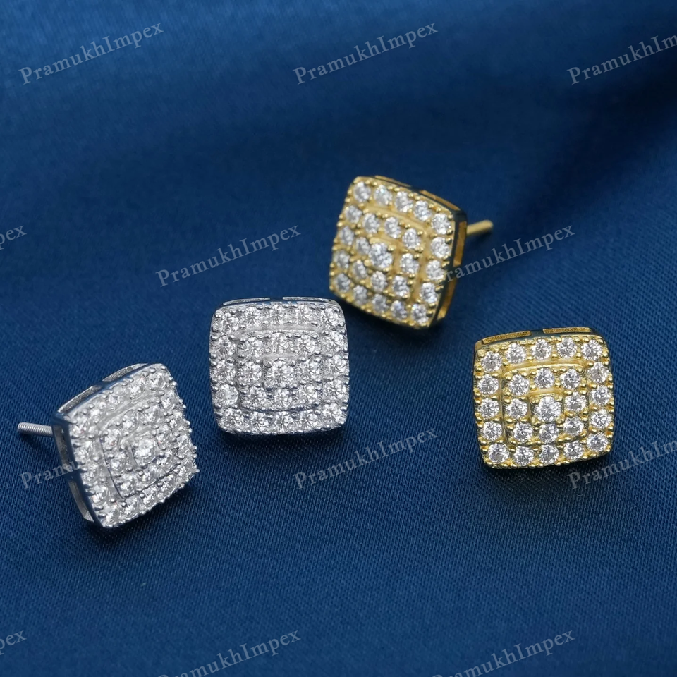 Premium Quality Moissanite Pave Cushion Stud Earring with Gold plated Crafted in 925 Sterling Silver Fashion Stud Earrings