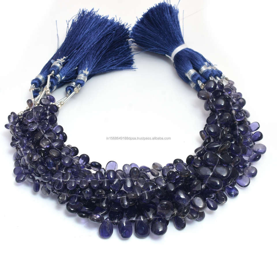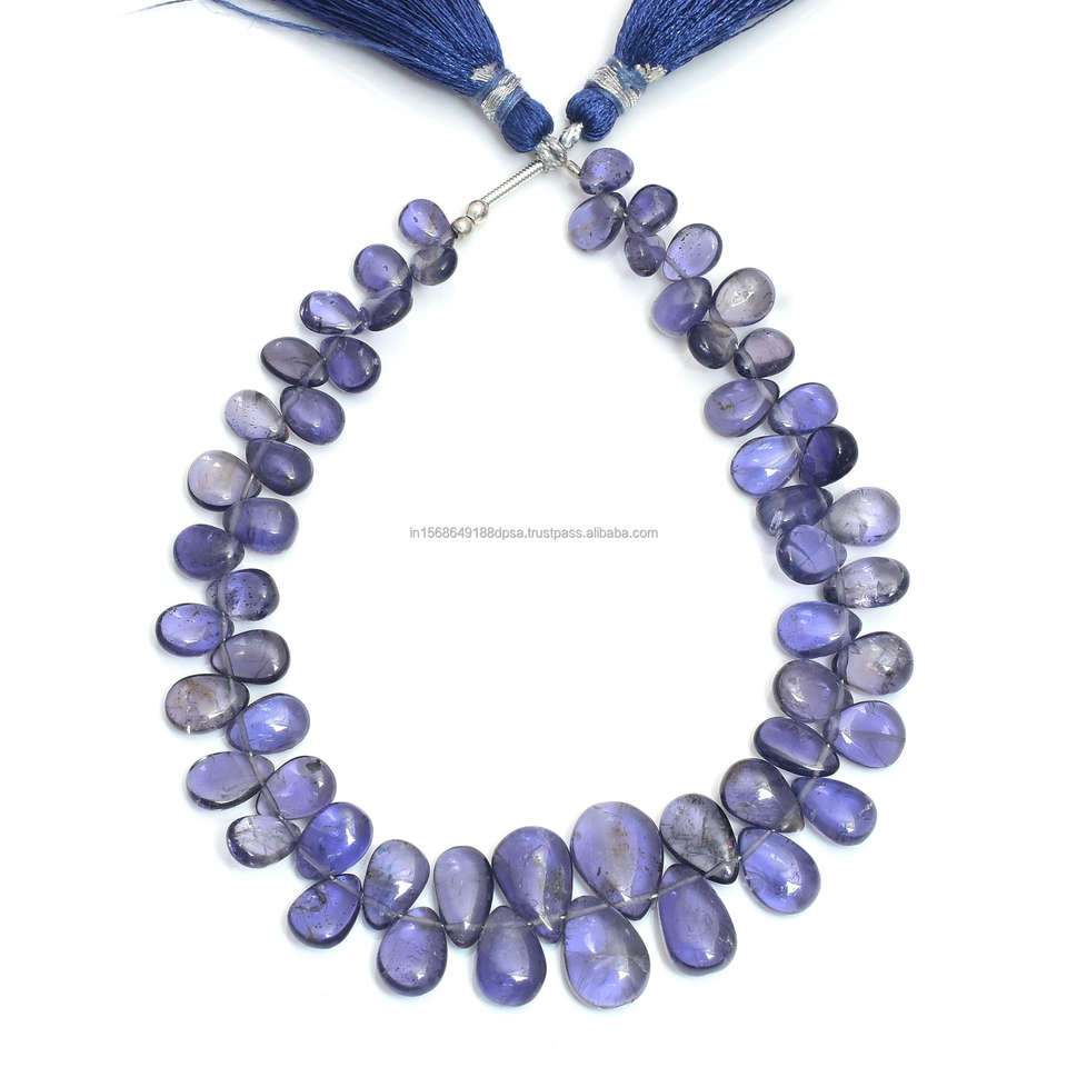 Premium Quality Natural Iolite Jewelry Beads 8-Inch Blue Smooth Pear Shape Gemstone Strand for Handmade Bracelet Necklace