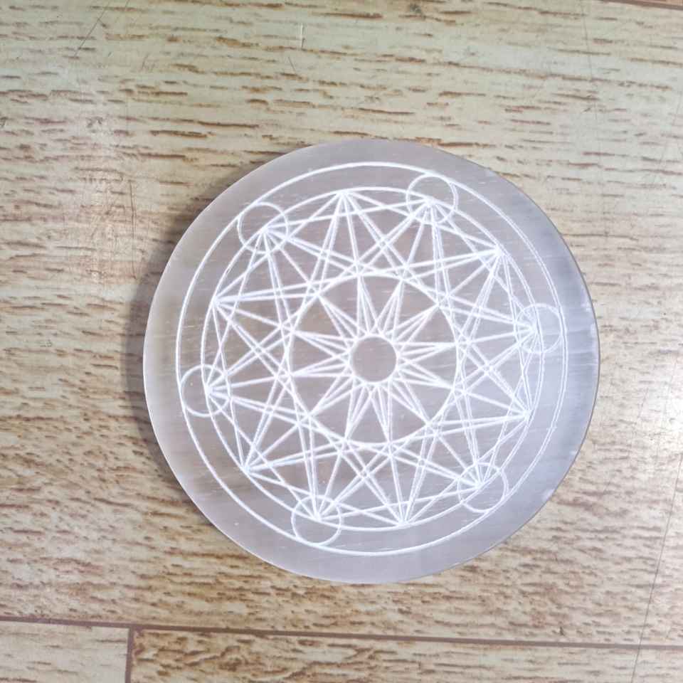 Premium Quality Natural Selenite Crystal Engraved Plate with Intricate Designs for Feng Shui and Chakra Balancing For Sale