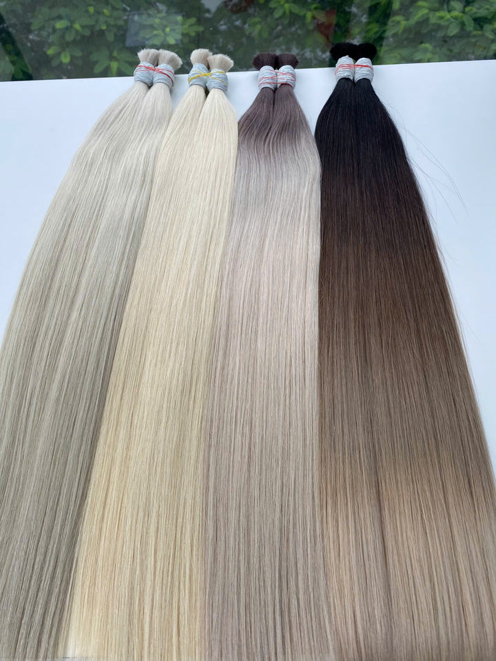 Premium Quality Natural Straight Vietnamese Virgin Hair Extensions Light Color Double Drawn Bulk Hair Bleached Chemically Hair