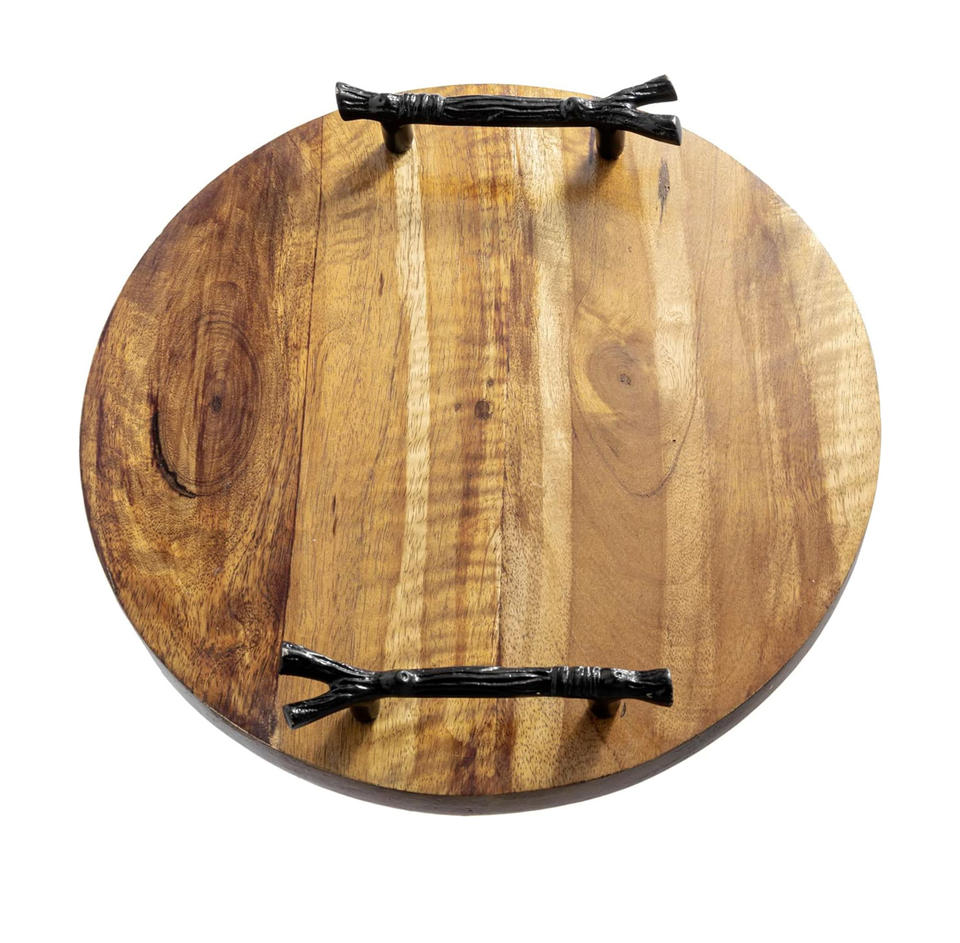 Wooden Serving Tray with Metal Handle