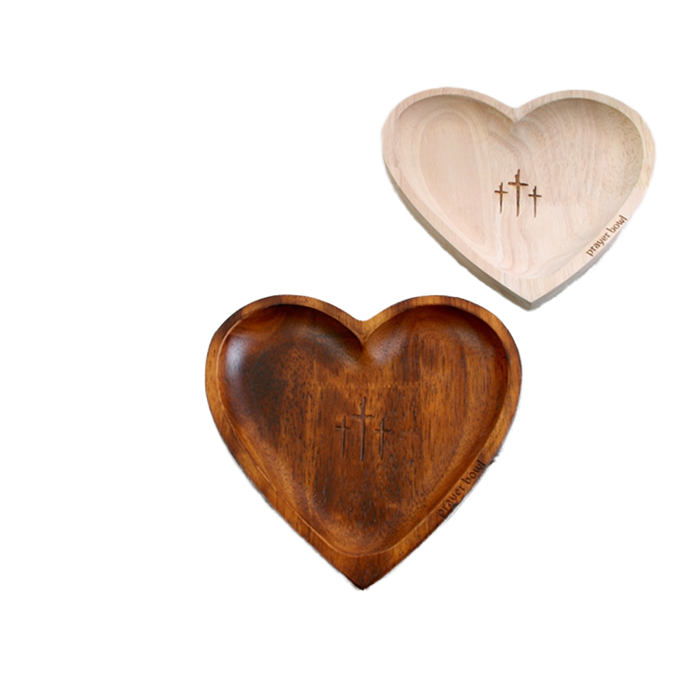 Premium Quality New American Style 5-Piece Heart Shaped Bowl Carved Wooden Cross Eco-Friendly Home Decor Candles Centerpiece