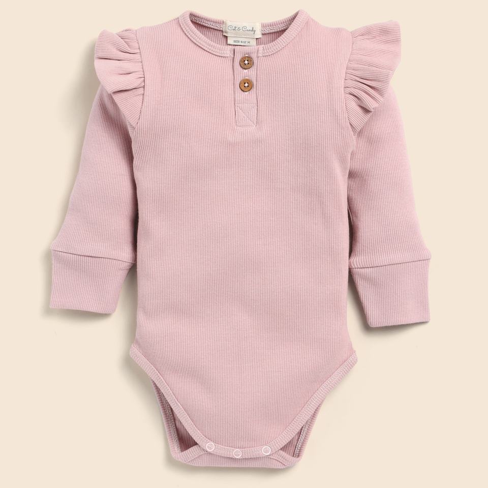 Premium Quality Organic Bamboo Elastane Long Sleeve Frill Bodysuits Blush Pink