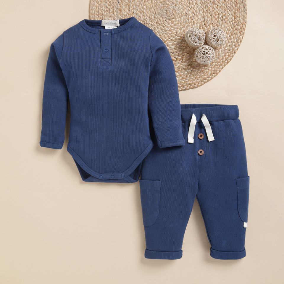 Premium Quality Organic Bamboo Elastane Long Sleeve Bodysuit With Drawstring Leggings - Navy