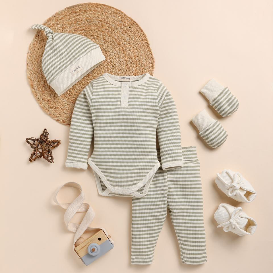Premium Quality Organic Bamboo Elastane Sage Stripe Beanie Baby Clothing Sets Pack of 5