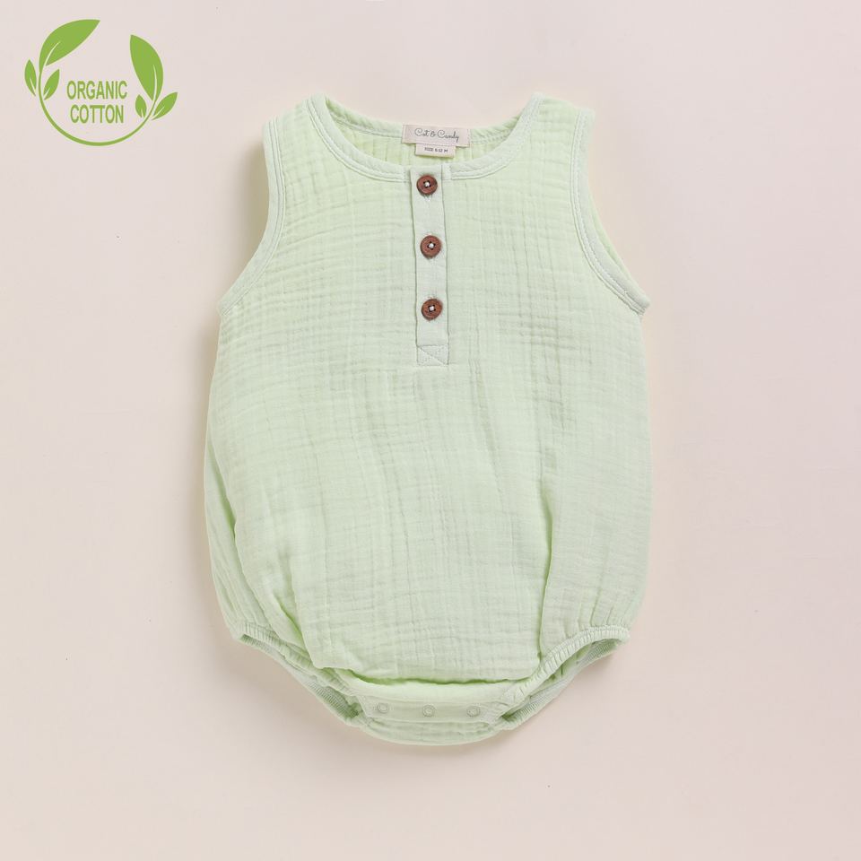 Premium Quality Organic Muslin Bubble Romper Pistachio Cream-Exquisite Baby Clothing