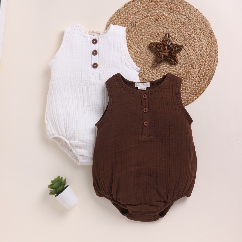 Whisper Baby Outfit Premium Quality Organic Muslin Bubble Romper Pack of 2 in Milk & Cocoa for Newborns