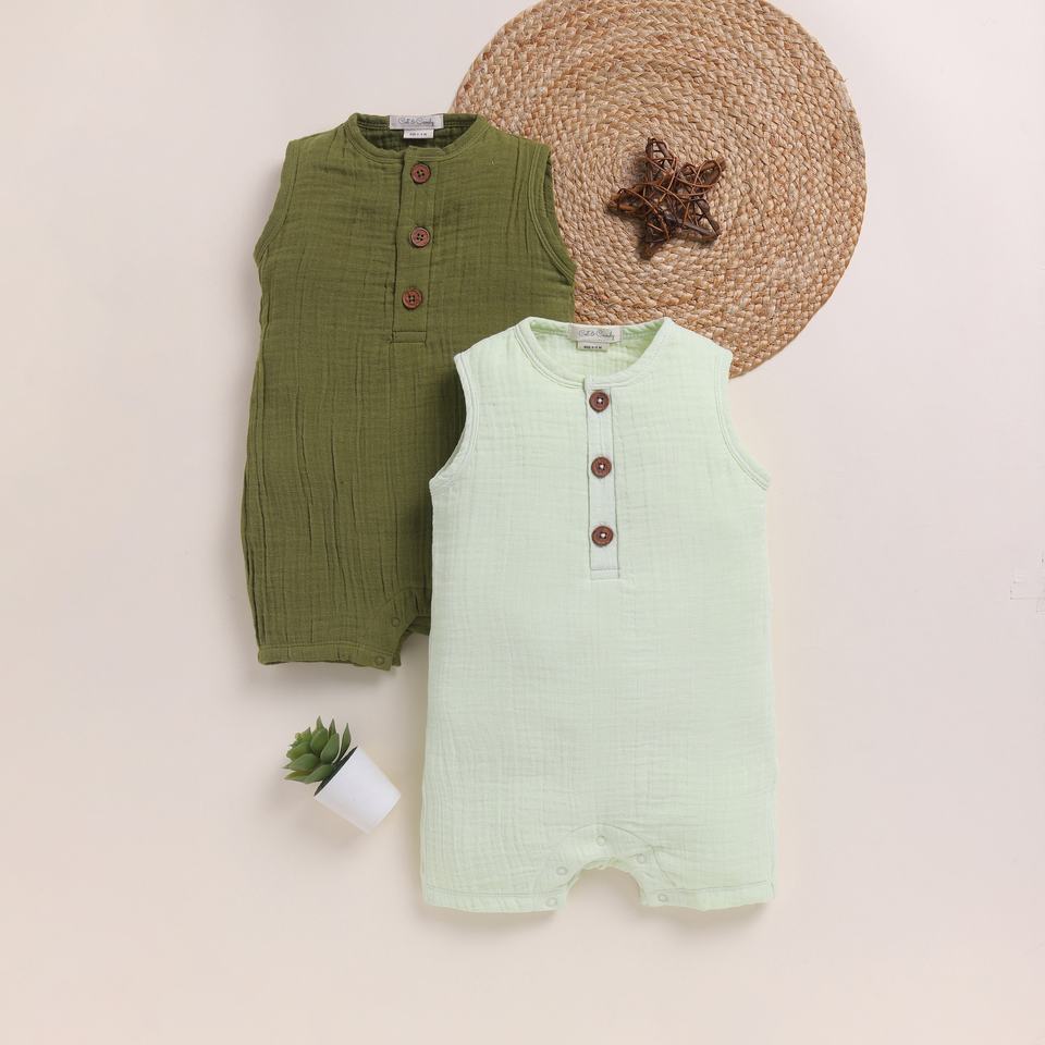 Premium Quality Organic Muslin Half Romper Pack 2 Olive Pistachio for Cream for Baby Organic Muslin Half Romper Pack 2 Olive