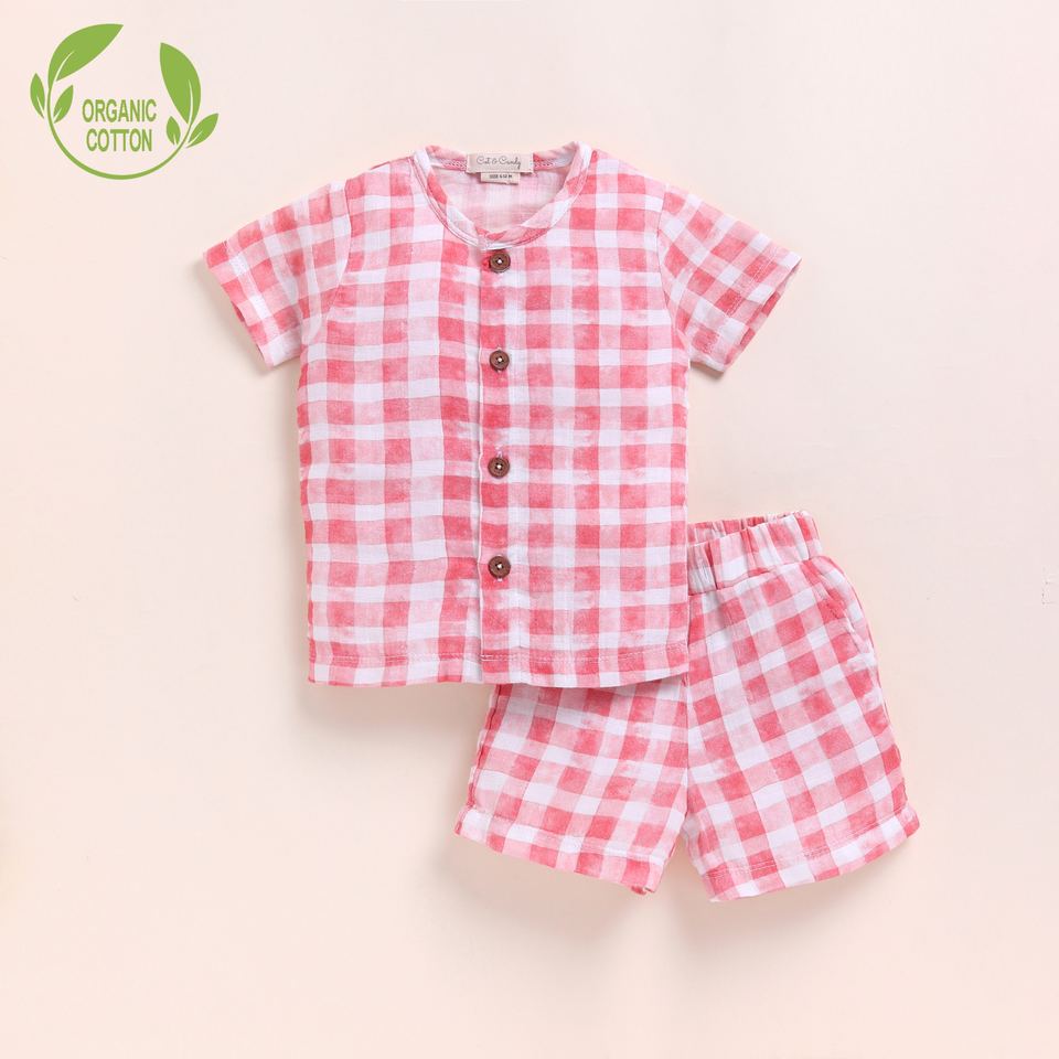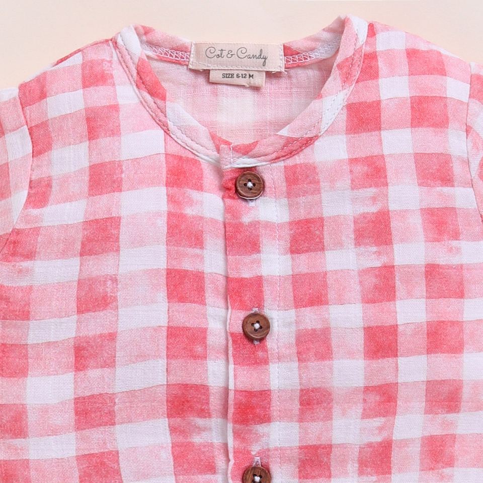 Premium Quality Organic Muslin Baby Clothing Sets Jabla with Pink Checks Print