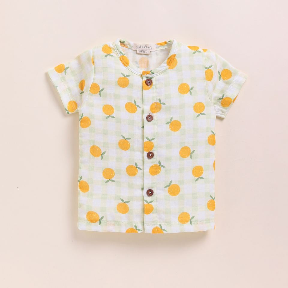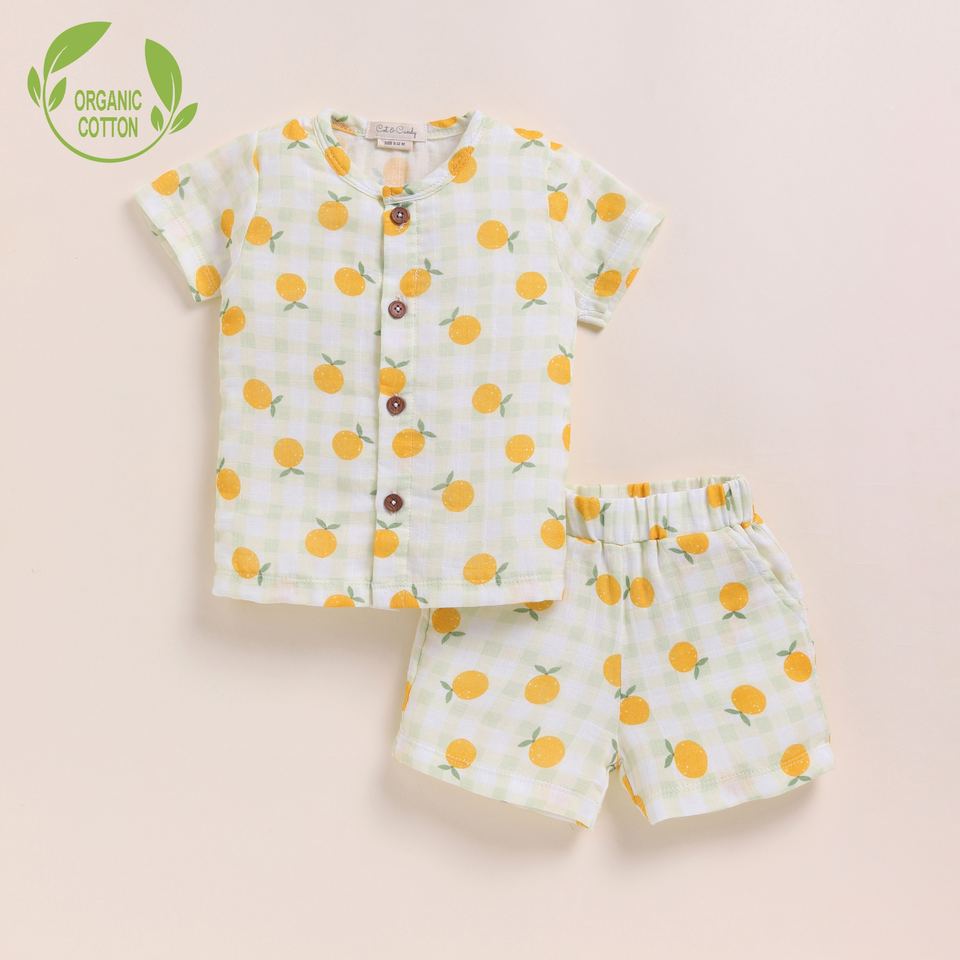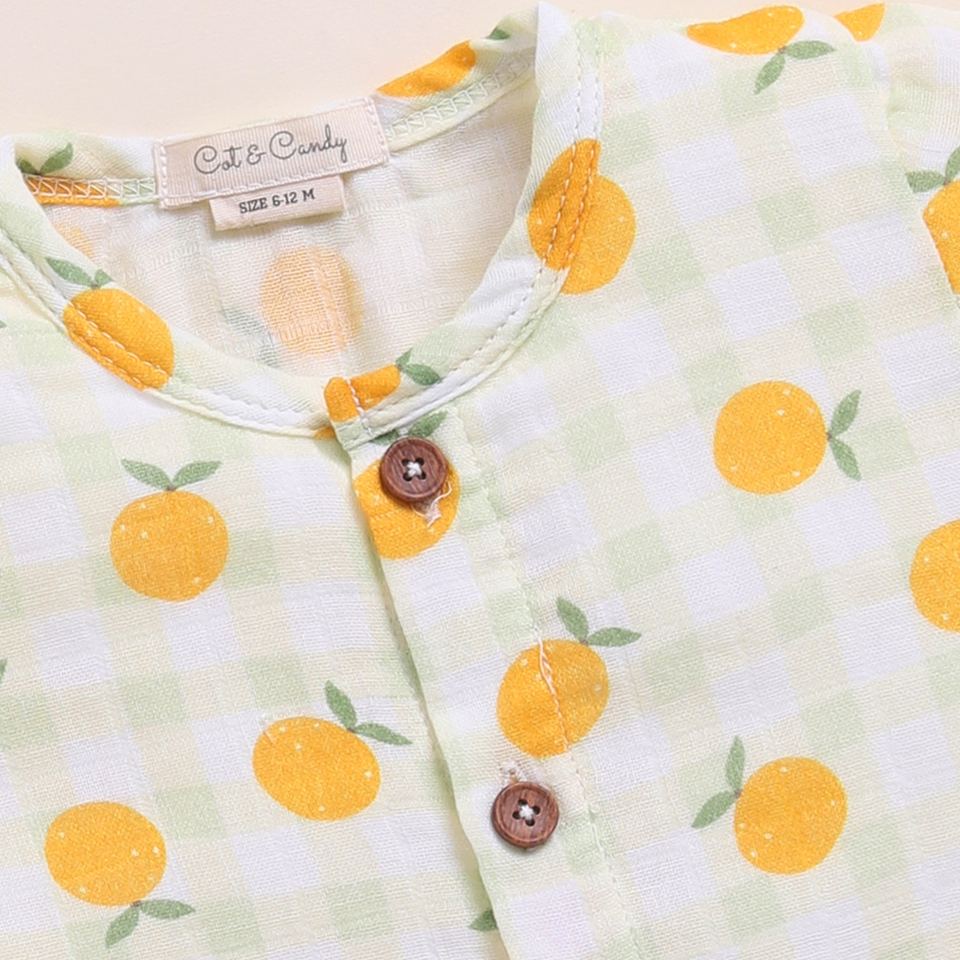 Premium Quality Organic Muslin Jabla Set Orange Printed Baby Clothing