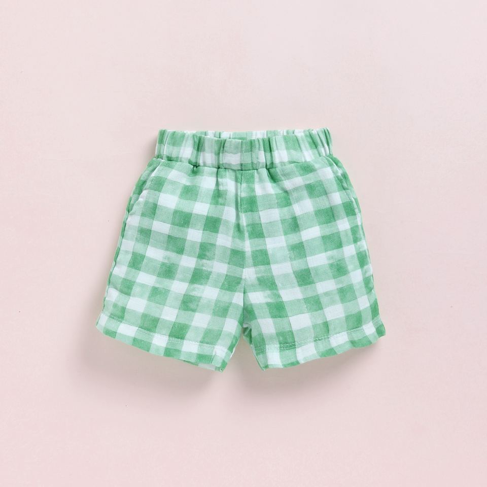 Organic Muslin Jabla Set for Babies Premium Quality Sage Checks Print Clothing Sets