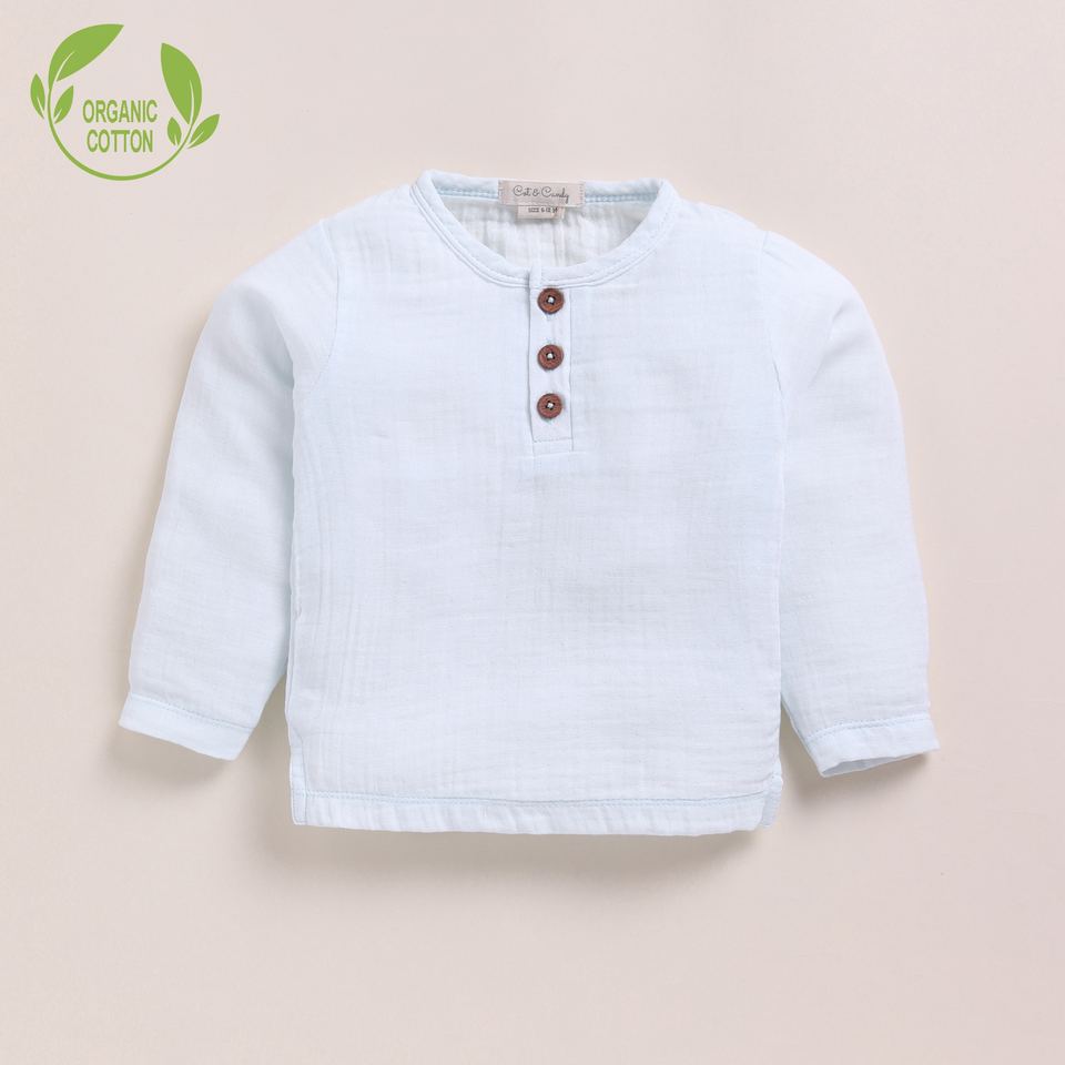 Organic Muslin Long Sleeve Henley Tshirt with Lounge Pant Set Premium Quality Baby Clothing-Icemelt