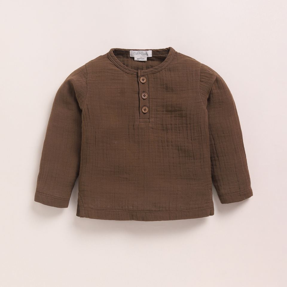 Organic Muslin Long Sleeve Henley Tshirt with Lounge Pant Set Premium Quality Cocoa Whisper Baby Clothing