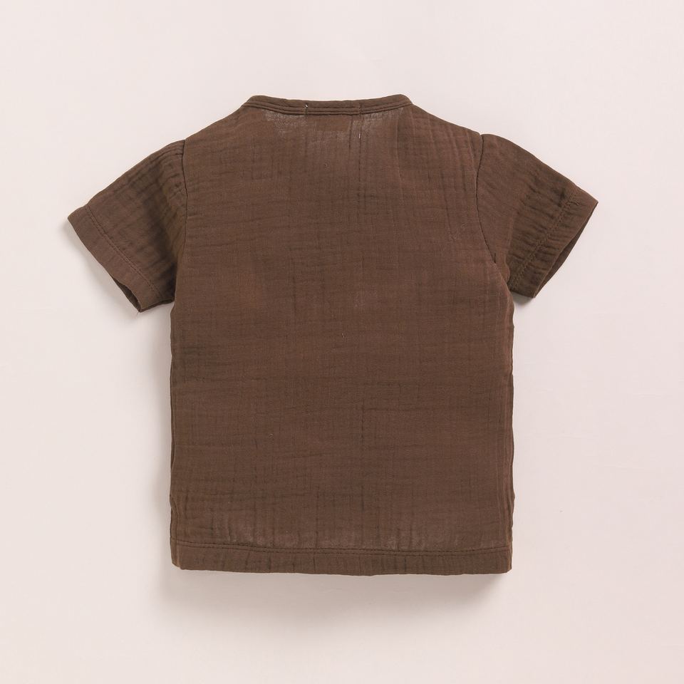 Organic Cocoa Whisper Short Sleeve Henley T-Shirt for Baby Premium Quality Premium Organic Muslin Baby T-Shirts